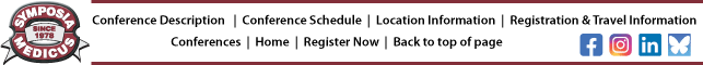 Conference cancellations must be made in writing (via email) to Symposia Medicus and a refund, less a 10% processing fee, will be given. No refunds will be made if cancellation is received after October 14, 2026; however, tuition, less a 10% processing fee, may be applied to a future Symposia Medicus conference.
