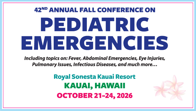 Our 42nd Annual Fall Conference on Pediatric Emergencies is designed for physicians, nurse practitioners, physician associates, nurses, and other allied healthcare professionals involved in the care of pediatric patients. Our expert faculty will discuss the latest evidence-based advancements in pediatric emergency medicine, present emerging clinical data, and provide skills and strategies for application and implementation into your practice. This educational activity aims to increase learner knowledge, improve the competence and performance of all attendees, and contribute to their ability to work together as part of a coordinated healthcare team.