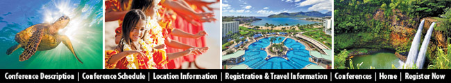 Conference group rates have been arranged at the Royal Sonesta Kauai Resort. Rooms at our group rates are limited and on a first come, first served basis. PLEASE RESERVE EARLY as rooms may sell out and/or room rates may increase. If you wish to extend your stay, group rates may be available three days before and three days after the conference.